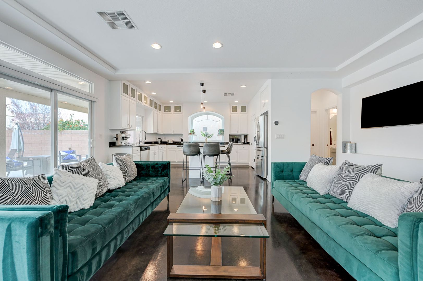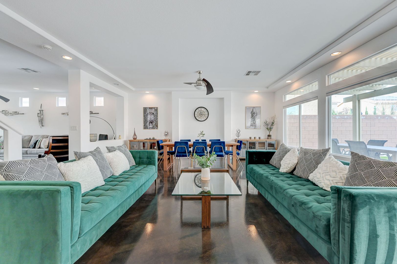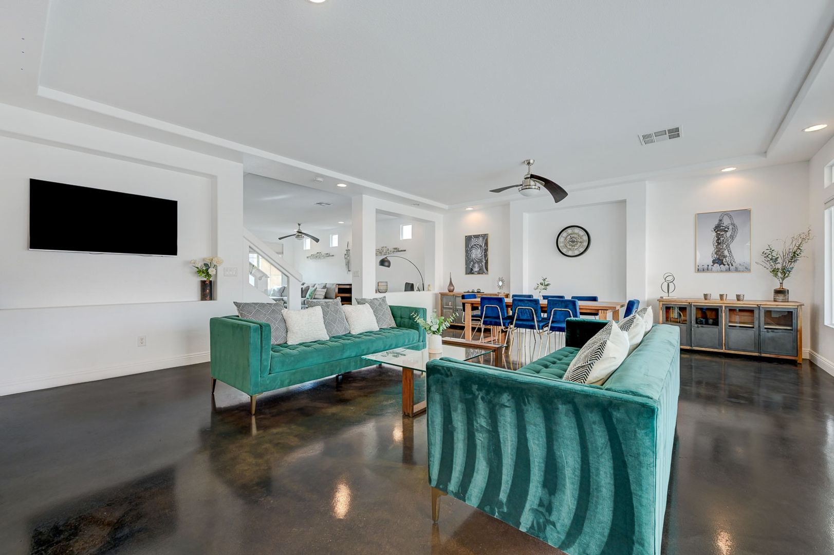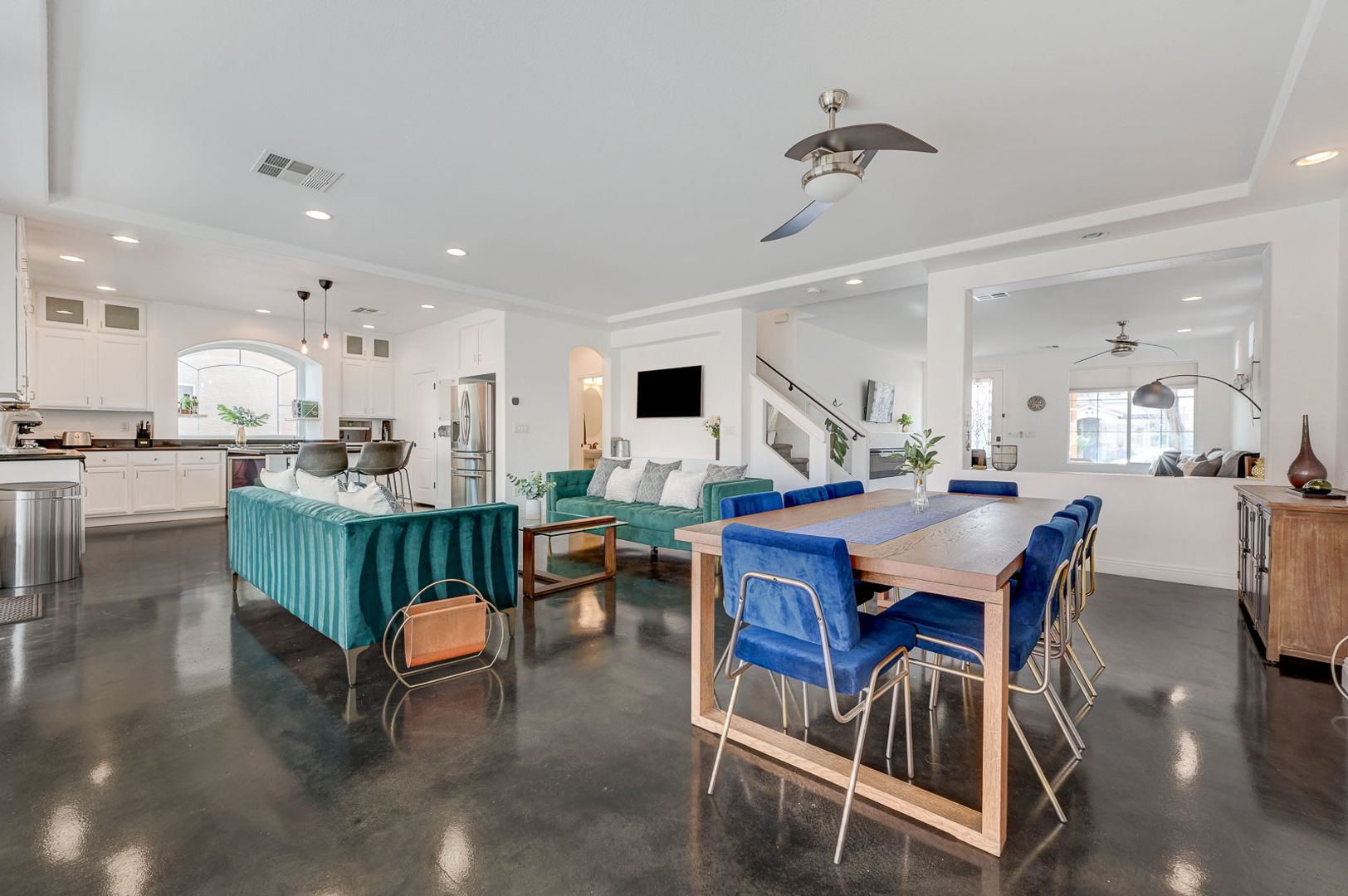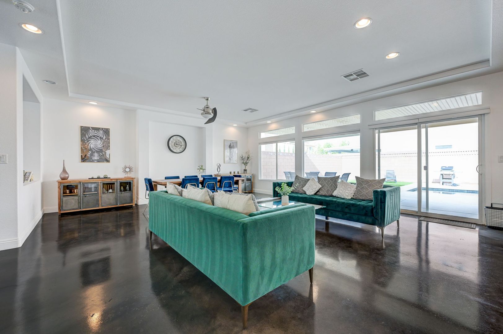 GORGEOUS FURNISHED RENTAL!!! Highly Upgraded, 4BD/2.5 Bath, OPEN Floor Plan w/ HUGE Additional Loft!!! Polished Concrete Floors Downstairs, Plank Tile Upstairs w Heated Floors in Master Bath- NO CARPET. Cozy Modern Fireplace in Living Room that Opens Up to Living Room. Gourmet Kitchen Includes: Island Breakfast Bar, Upgraded Cabinets, Pantry, Reverse Osmosis, & Stainless Steel Appliances. Large Master Suite Includes: Walk In Closet, Dual Sinks, Convient Shower Only. Home has Ceiling Fans Throughot Living Areas. POOL and SPA Oasis Yard!